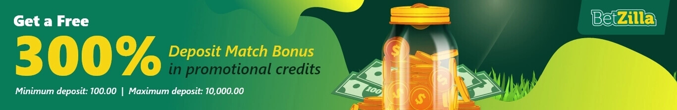 - Get a Free 300% Deposit Match Bonus in promotional credits