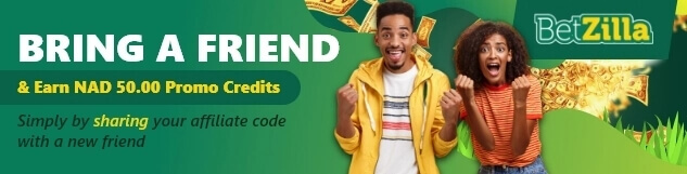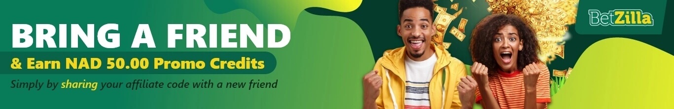 Exciting news for all sports betting fans! Get ready to share the fun with your friends and earn some fantastic rewards along the way. Introducing our "Bring a Friend" program where you can earn NAD 50.00 Promo Credits simply by sharing your affiliate code with a new friend.
